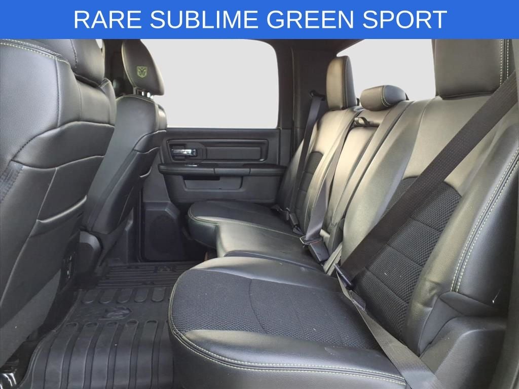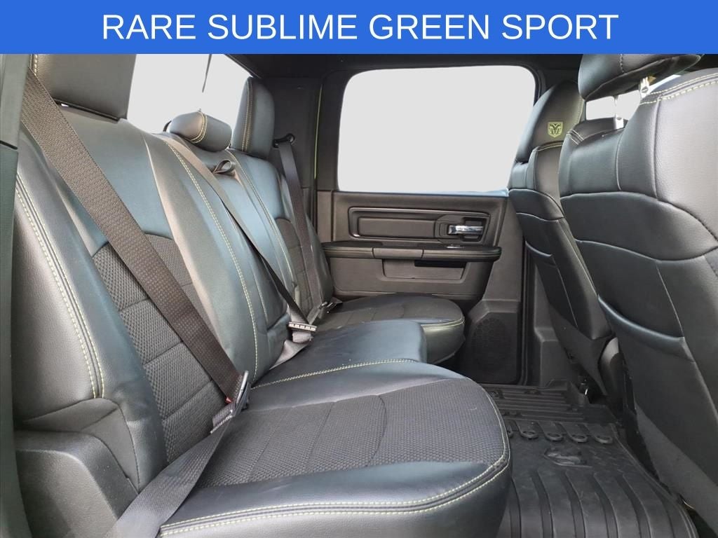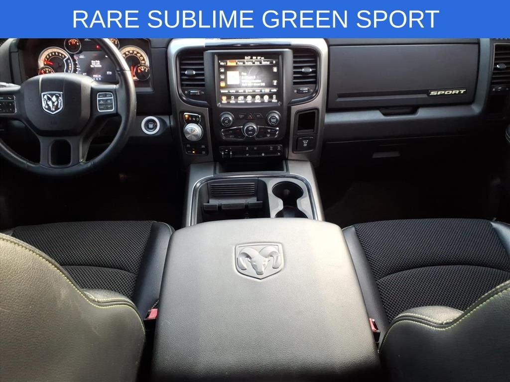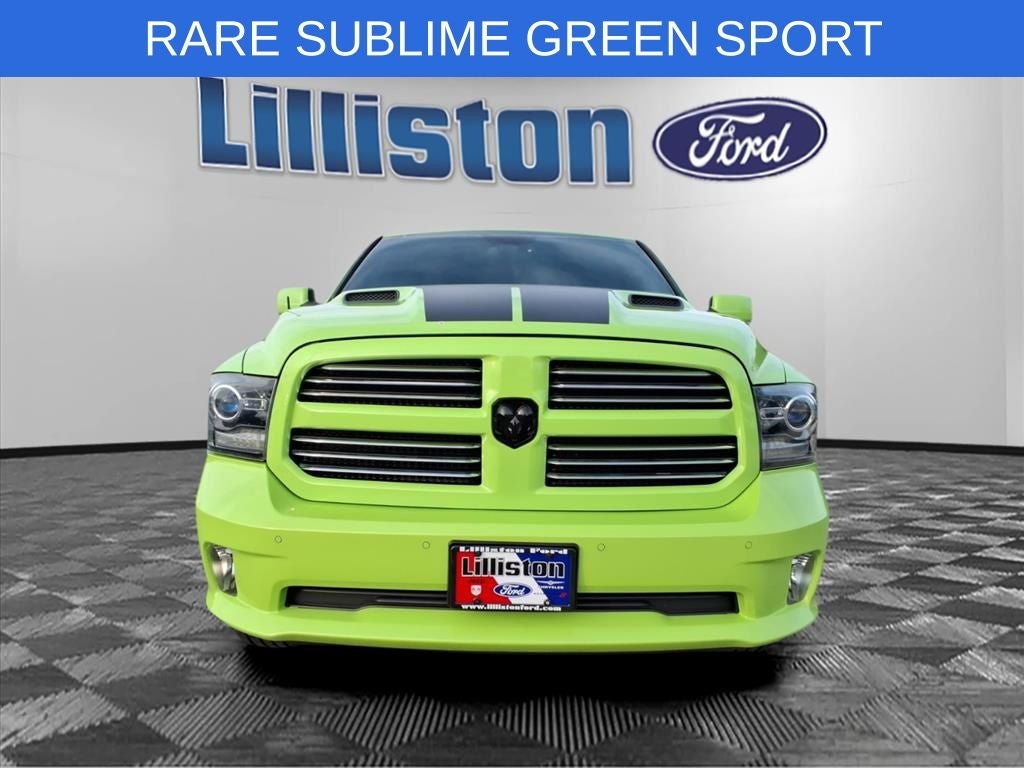 Lilliston Ford is proud to offer this fantastic 2017 Ram 1500 a positively gorgeous Truck with the following Features: Convenience Group (Auto High Beam Headlamp Control, Keyless Enter-N-Go, Rain Sensitive Windshield Wipers, and Remote Proximity Keyless Entry), Heated Seats & Wheel Group, Quick Order Package 26L Sport (Dual Rear Exhaust w/Bright Tips), Sublime Green Sport Package (DISC) (4x4 Flat Black Badge, Black Closeout Trim, Black Ram Head Tailgate Badge, Body Color/Bright Billets Grille, Bucket Seats, Center Hub, Deluxe Cloth High-Back Bucket Seats (DISC), Flat Black 5.7L Hemi Badge, Flat Black Ram 1500 Badge, Folding Flat Load Floor Storage, Full Length Upgraded Floor Console, High Back Seats, MOPAR Sport Performance Hood Decal, Power Lumbar Adjust, Rear 60/40 Split Folding Seat, Sport Performance Hood, and Wheels: 20 x 9 Semi-Gloss Black Aluminum), 1 Yr. Trial (Registration Required), 115V Auxiliary Power Outlet, 20 x 9 Polished Aluminum Wheels, 3.21 Rear Axle Ratio, 4 Adjustable Cargo Tie-Down Hooks, 4-Wheel Disc Brakes, 5-Year SiriusXM Traffic Service, 5-Year SiriusXM Travel Link Service, 6 Speakers, 8.4 Touchscreen Display, ABS brakes, Active Grille Shutters, Adjustable pedals, Air Conditioning, Alloy wheels, AM/FM radio, Anti-Spin Differential Rear Axle, Audio Jack Input for Mobile Devices, Auto-dimming door mirrors, Auto-dimming Rear-View mirror, Automatic temperature control, Bed Cargo Divider/Extender, Black Tubular Side Steps, Brake assist, Bright Rotary Shifter, Bumpers: body-color, Class IV Receiver Hitch, Cloth Bucket Seats, Compass, Delay-off headlights, Driver door bin, Driver vanity mirror, Dual front impact airbags, Dual front side impact airbags, Electronic Shift, Electronic Stability Control, Electronically Controlled Throttle, Emergency communication system: Uconnect Access, Front anti-roll bar, Front Bucket Seats, Front Center Armrest w/Storage, Front dual zone A/C, Front fog lights, Front reading lights, Front wheel independent suspension, Fully automatic headlights, Garage door transmitter, GPS Antenna Input, GPS Navigation, HD Radio, Heated door mirrors, Heated Front Seats, Heated front seats, Heated Steering Wheel, Heated steering wheel, Heavy-Duty Engine Cooling, Illuminated entry, Integrated Voice Command w/Bluetooth®, Leather steering wheel, LED Bed Lighting, Low tire pressure warning, Media Hub (USB, AUX), Next Generation Engine Controller, Occupant sensing airbag, Outside temperature display, Overhead airbag, Overhead console, Panic alarm, ParkSense Front/Rear Park Assist System, ParkView Rear Back-Up Camera, Passenger door bin, Passenger vanity mirror, Power door mirrors, Power driver seat, Power steering, Power Sunroof, Power windows, Radio data system, Radio: Uconnect 3C Nav w/8.4 Display, Radio: Uconnect 3C w/8.4 Display, RamBox Cargo Management System, Rear anti-roll bar, Rear seat center armrest, Rear step bumper, Rear Window Defroster, Remote keyless entry, Remote USB Port, SIRIUSXM Satellite Radio, SIRIUSXM Traffic, SiriusXM Travel Link, Speed control, Split folding rear seat, Spray In Bedliner, Steering wheel mounted audio controls, Tachometer, Tilt steering wheel, Tip Start, Traction control, Trip computer, Turn signal indicator mirrors, Uconnect Access, Uconnect Access 1 Year Trial, Variably intermittent wipers, and Voltmeter.